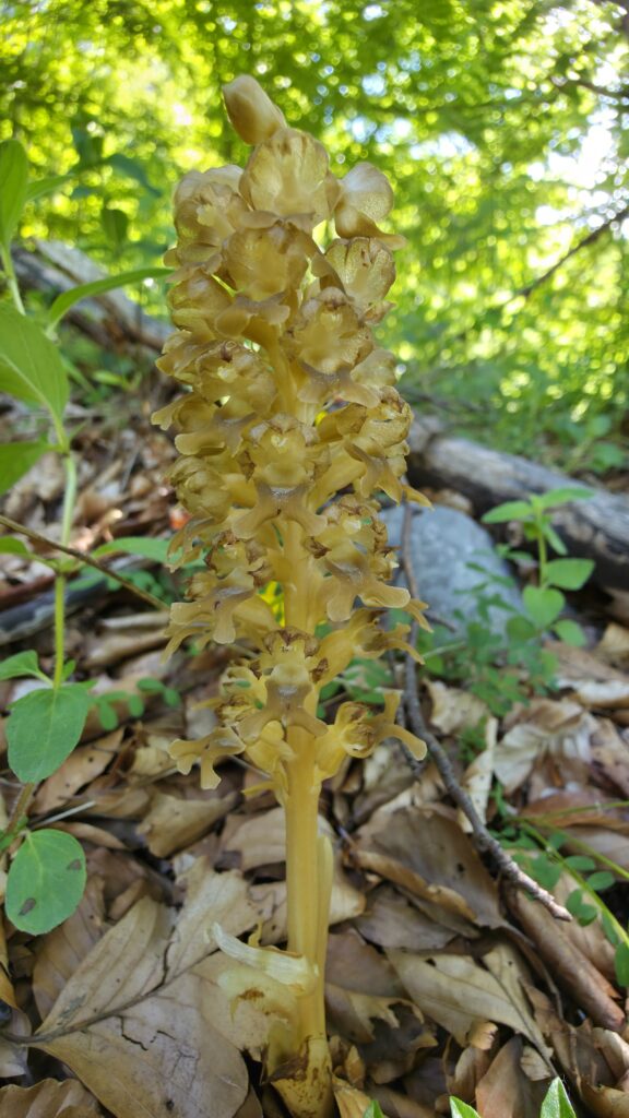 Weiter geht es durch lichten Wald und über blühende Naturwiesen. Die Beschilderung ist bis hierhin hervorragend – nur den Abstieg müssen wir erst einmal suchen.