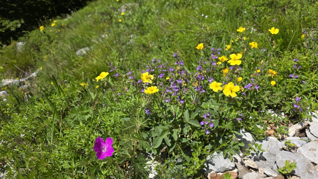 Am Wegesrand entdecken wir immer wieder bunte Wildblumen, die kleine Farbtupfer in die Landschaft setzen.