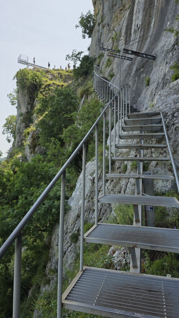 Dann stehen wir vor ihnen: den Stahlstufen. Schritt für Schritt geht es weiter nach oben, bis wir schließlich den kurzen Steg zur Aussichtsplattform erreichen.
