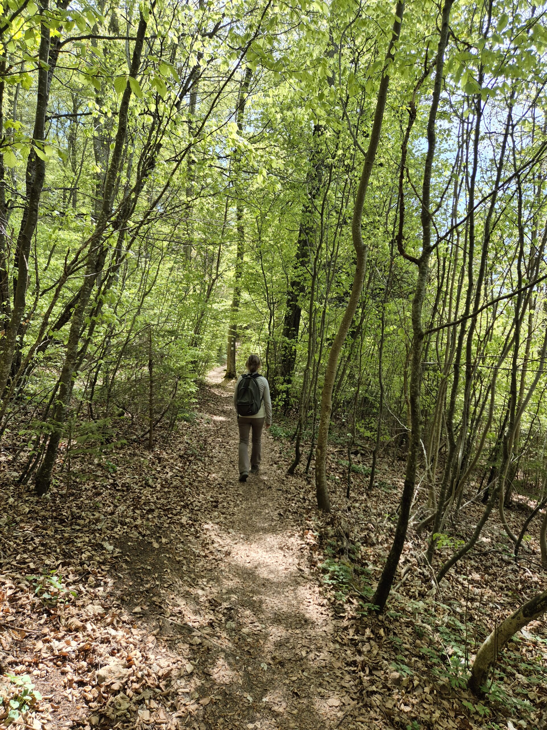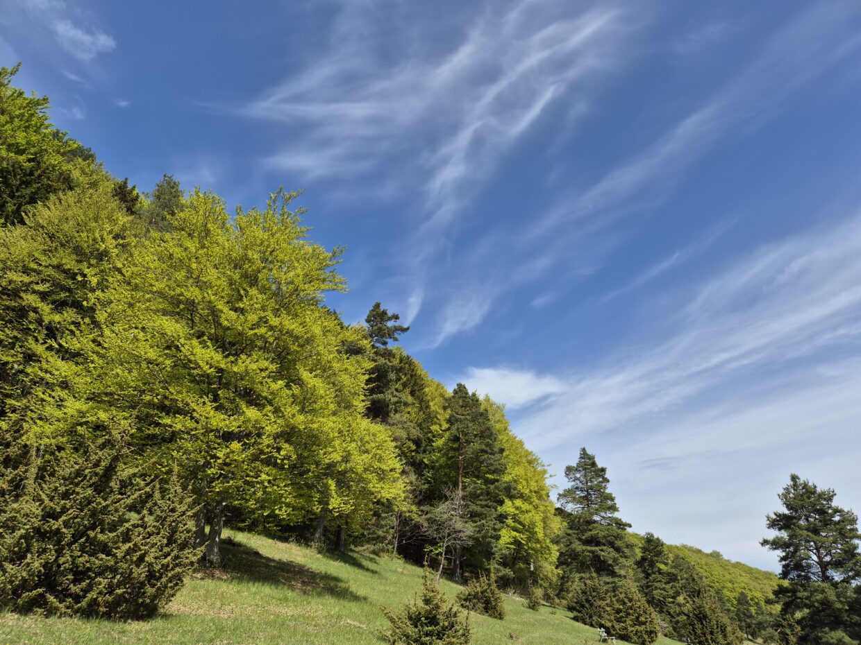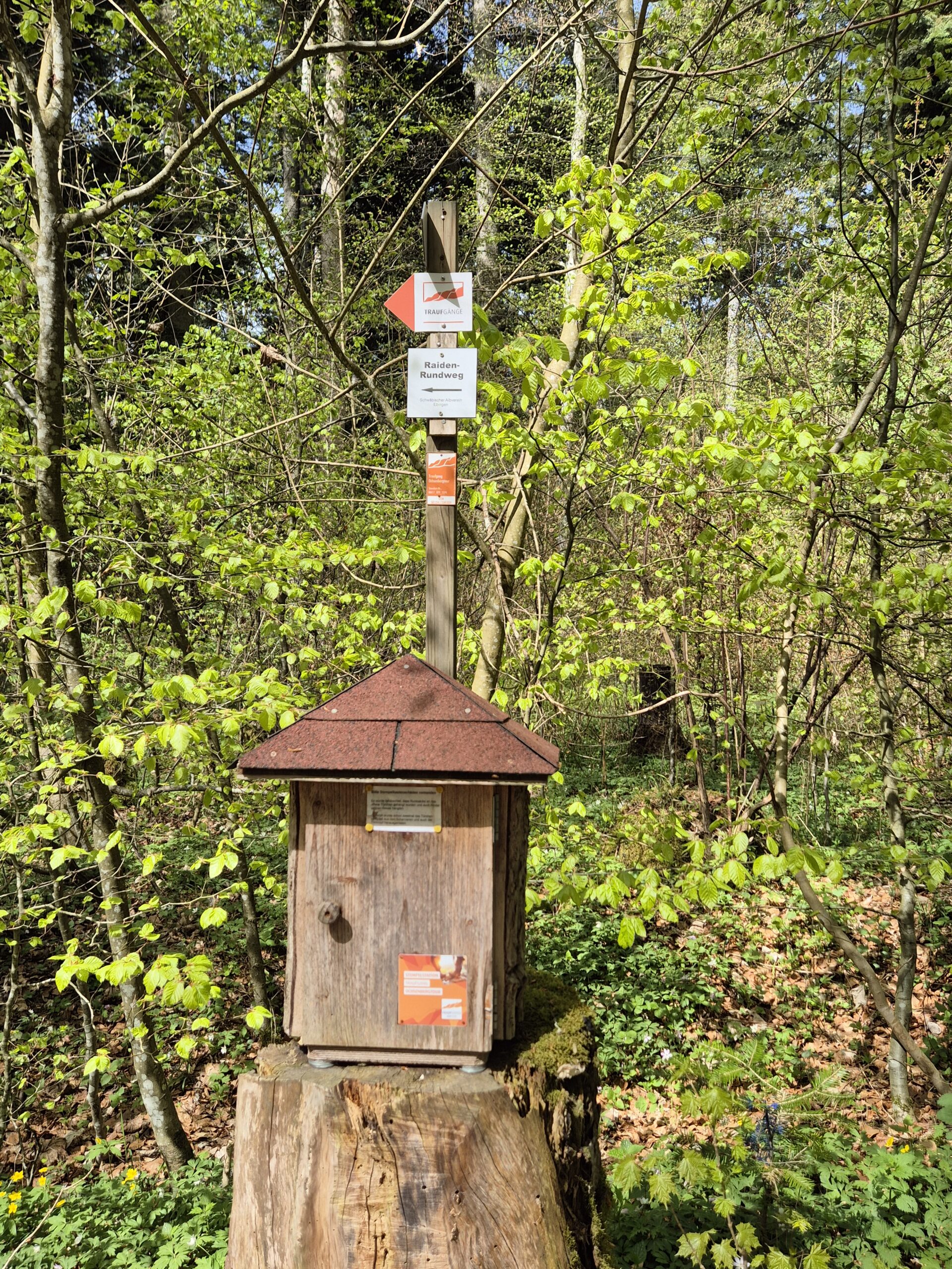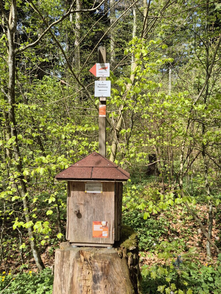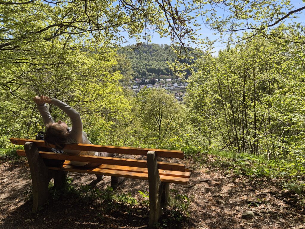 Bei bestem Wetter schnüren wir unsere Wanderschuhe und starten auf den Rundweg „Traufgänge Ochsenberg“. Die Strecke ist super ausgeschildert – verlaufen kann man sich hier eigentlich nicht.